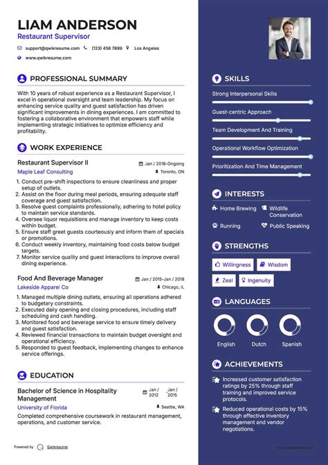 cv template for restaurant supervisor