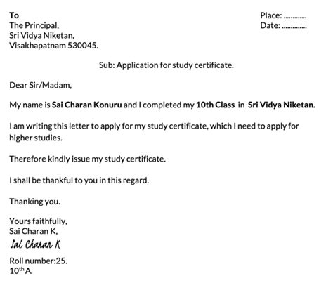 how to write study certificate application
