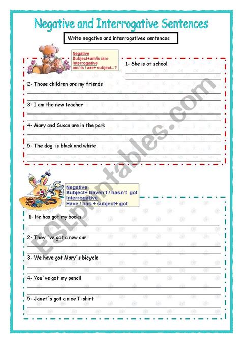 negative and interrogative sentences worksheet with answers