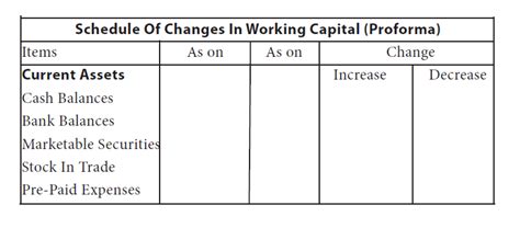 what is schedule of changes in working capital